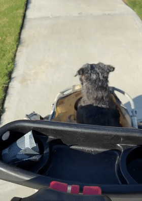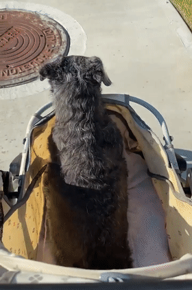 坐在小推車里還要用前腿「走路」...