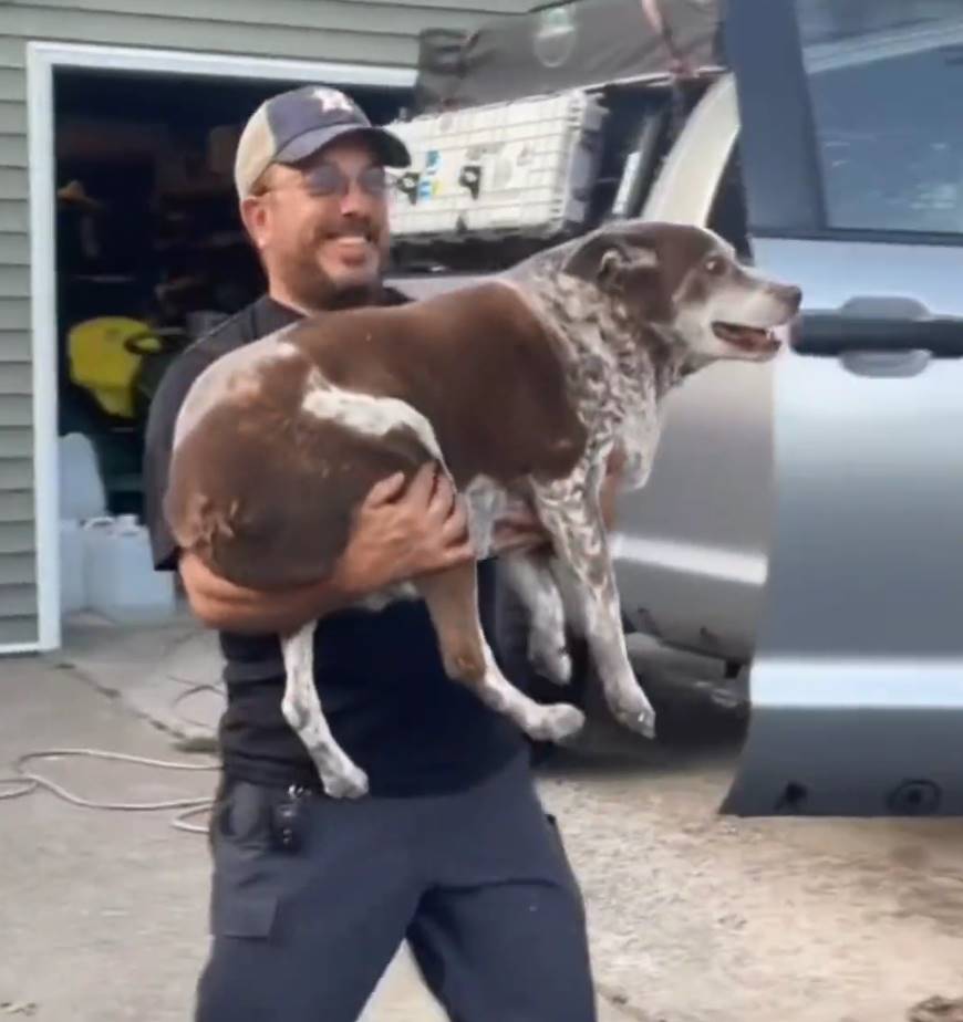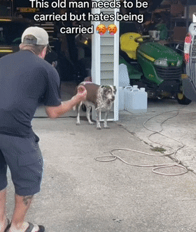 網友家的狗子13歲了,已經蹦不動了,平時上車需要人抱著,可它又很討厭讓人抱上車...
