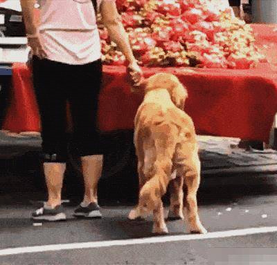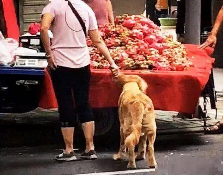 網友@小丑魚 在街邊看到一只金毛狗狗,非常乖巧的跟在主人身邊,一起走向賣火龍果的攤位挑水果。原本沒什麼笑點,但因為太喜歡金毛,他便打開相機對準金毛開拍,可在鏡頭拉近后,突然笑出了豬聲。