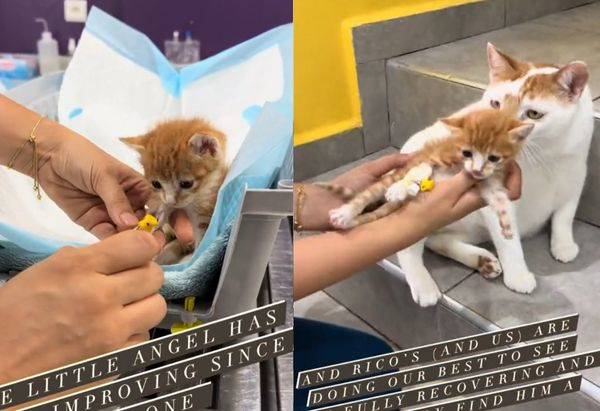 醫院透露,小貓因為意外被送進醫院,幸好有醫護人員及時處理,身體才平安無事,並且也看到貓貓在恢復元氣的過程中,Rico也跑去幫忙,將對方當成自己的小孩一樣在照顧。