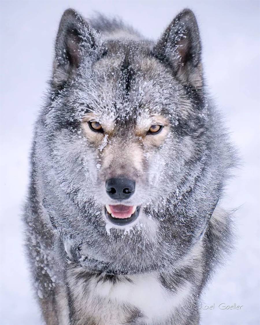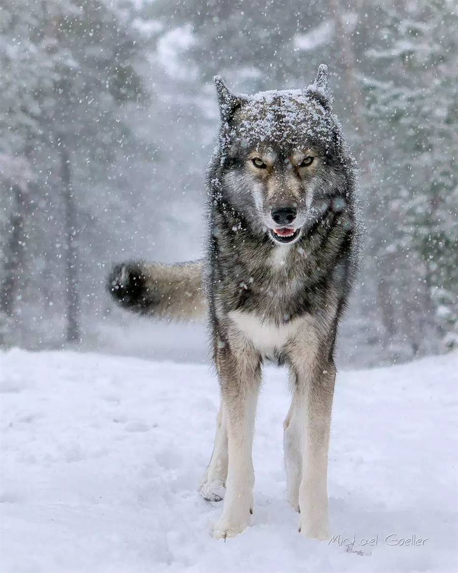無意中在網上看到這樣一張照片,第一反應就是:哇,哪個攝影師這麼厲害,可以這麼近距離地把狼拍得這麼好看?