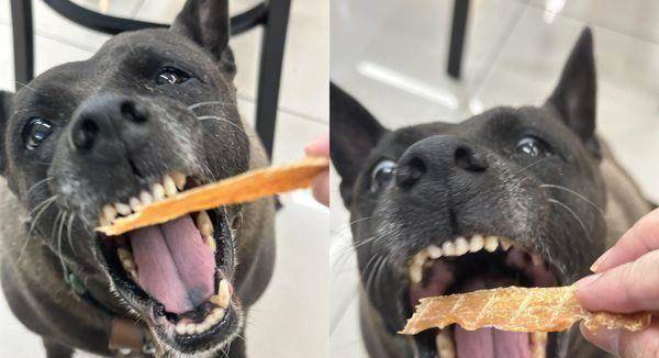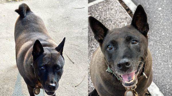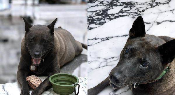 當時黑吉瘦到只剩20公斤,讓馬老師非常心疼,不但買了很好的飼料和營養品,還讓牠吃無調味雞腿排+牛排補充營養。馬老師提到,大約領養2個月後,黑吉慢慢開始長肉,體重來到24.5公斤,每天早餐一顆水煮蛋、半條蒸地瓜、紐西蘭進口狗狗牛奶、零食肉乾,體重又增到26.5公斤,現在則飆升到30公斤,經常被人說是伙食很好的「瓦斯桶」,或是「胖成跟豬一樣」,如今牠踏上減肥之路,逐漸往目標體重邁進。