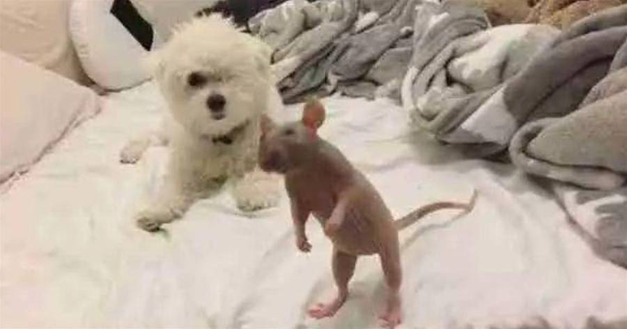 特別是那只無毛老鼠,可能因為它自己沒有毛的緣故,所以它對艾瑪的毛特別感興趣,經常幫艾瑪梳理狗毛。