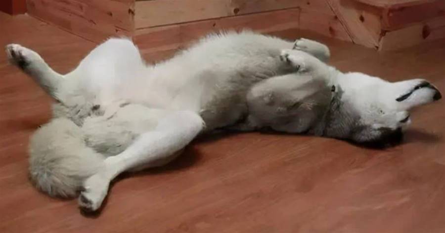 認主的狗狗都會四腳朝天睡,它會把自己最脆弱的肚子露出來,其實狗狗這樣做是因為信任你,所以才會這樣睡的。
