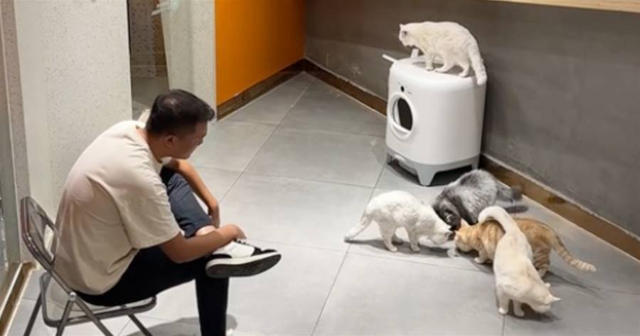 但面對著老闆的苦口婆心,小貓咪們主打就是一個愛答不理,你說你的我吃我的,沒一個把老闆當回事的。
