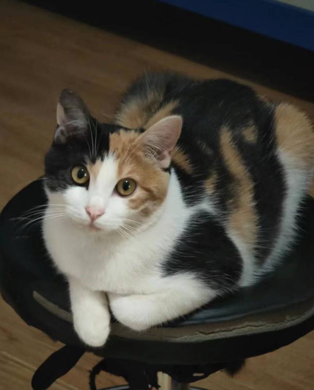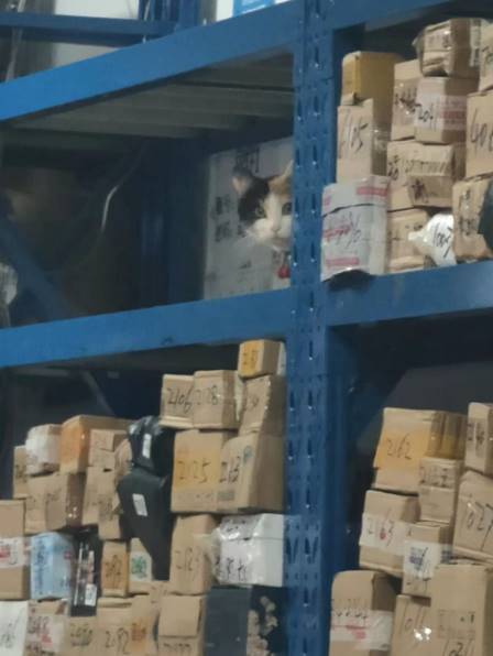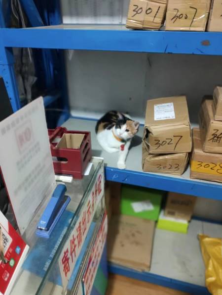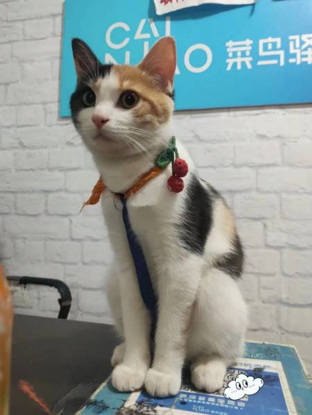 網友@阿君的星球 發現小區里的菜鳥驛站養了一只小三花貓,特別可愛。