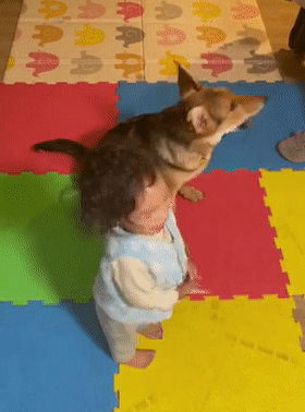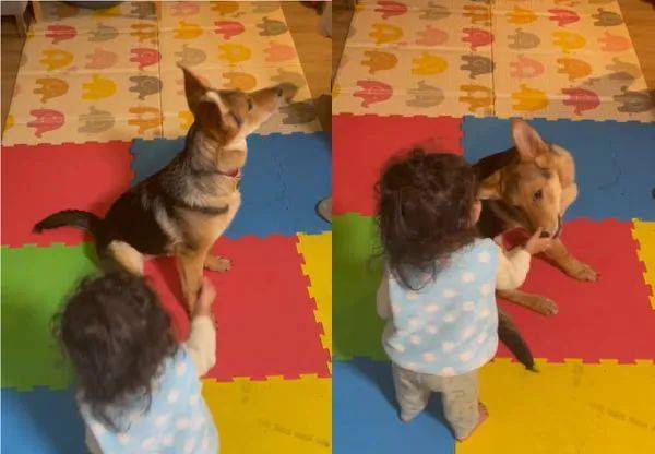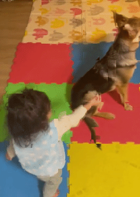 女兒:我悟了,這個游戲就是只要轉圈,狗子就有零食吃,所以我轉圈了,狗子就有的吃!