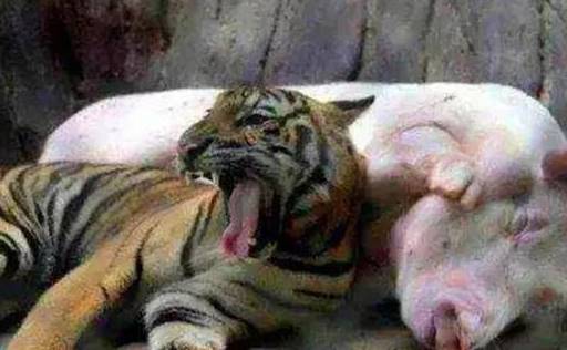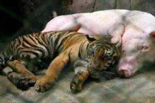 但其實這世界上有很多美好的事情,老虎和豬無疑是敵對的,但你見過老虎為了一口吃的裝成豬的模樣嗎?