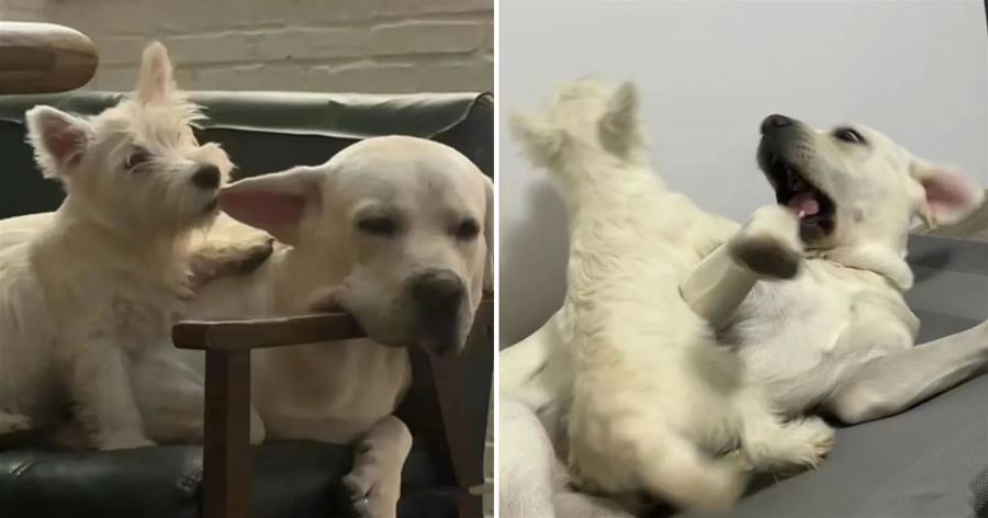 網友養了兩只狗狗,一只是拉布拉多,一只是西高地白梗。