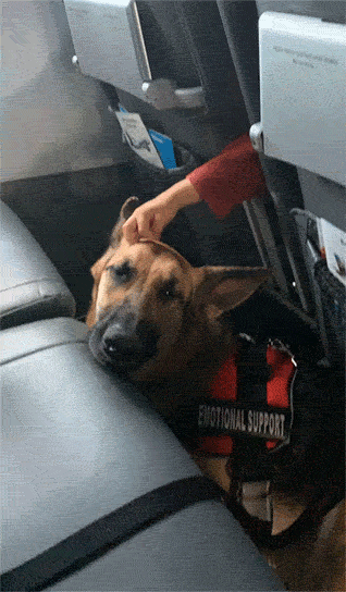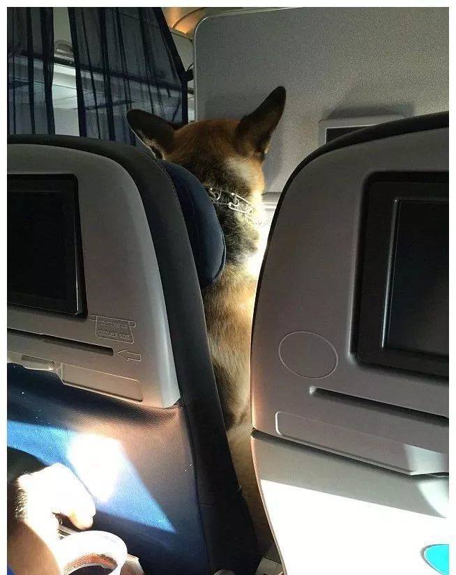 網友表示這是他坐過的最煎熬的一趟飛機,前排坐了只德牧,而他卻不能伸手去摸!