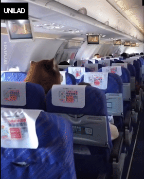 在飛機上剛打開了一包零食,結果,前排就冒出來了一枚狗頭!