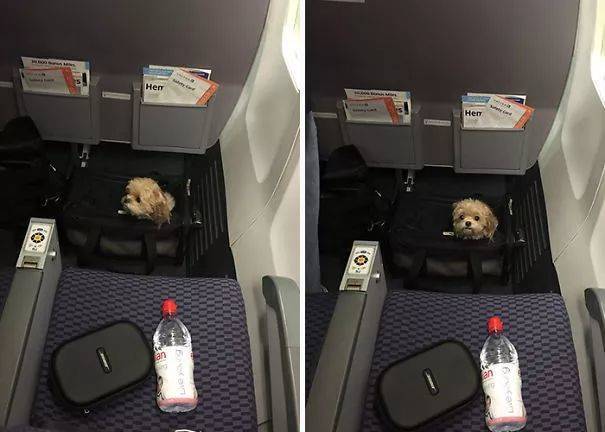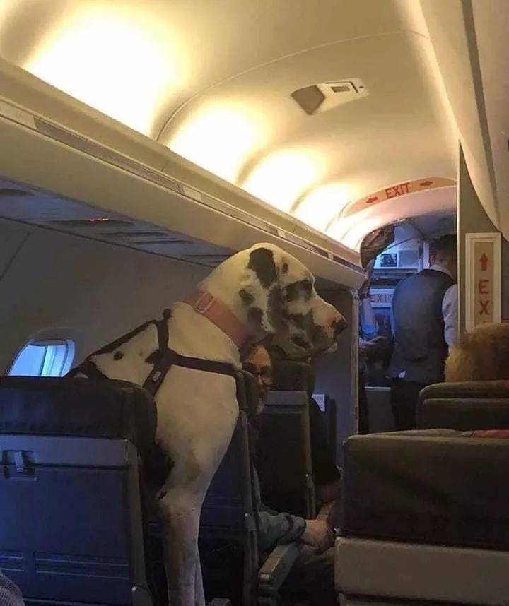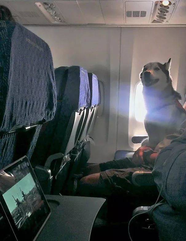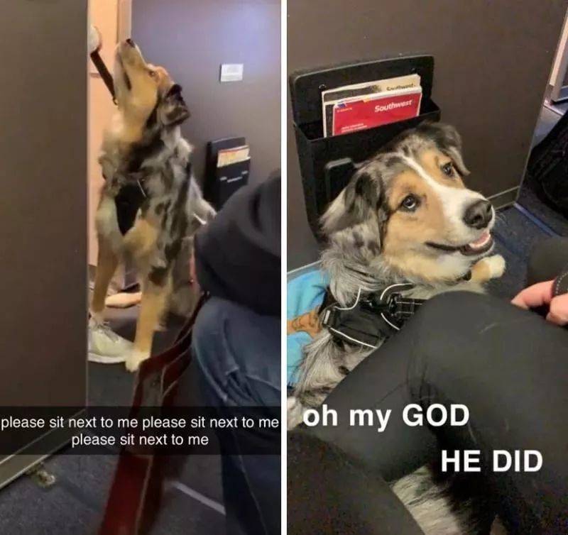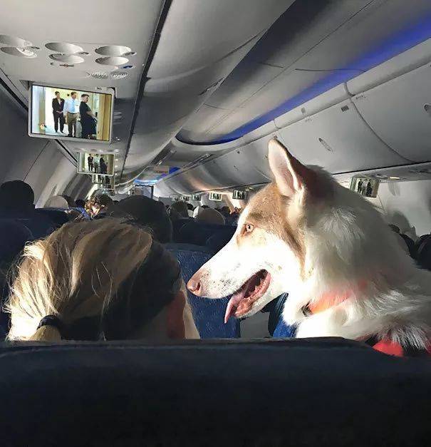 在飛機上看到了狗砸后,就一直默念它能坐到自己身邊,沒想到它真的坐過來了!