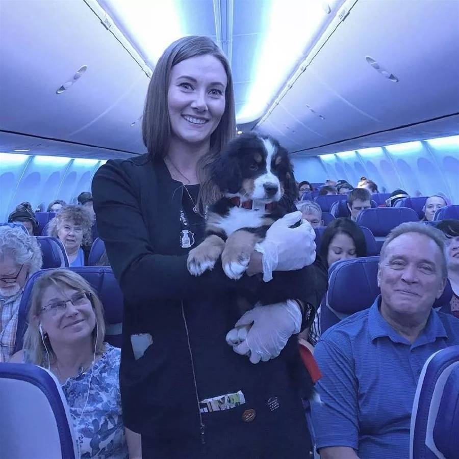 兩個月的伯恩山寶寶第一次坐飛機,最激動的反倒是這位空姐...