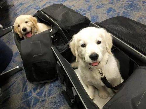 這倆小家伙已經做好準備汪生第一次坐飛機:希望乘客們都會喜歡我和我的傻弟弟!