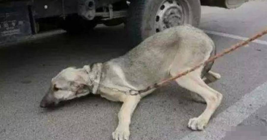 剛開始它死死的纏住主人不放,心里急得都快哭了。 為了逃生它準備鉆進車底不出來,沒想到反被自己脖子上的牽繩給套住了。