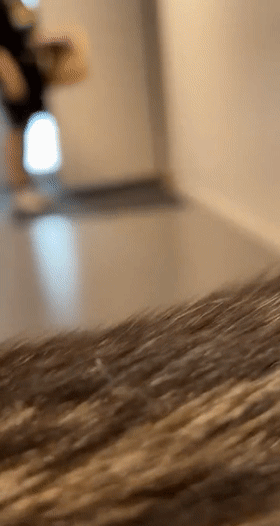可當它發現媽媽在后面時……一個鯉魚打挺就爬了起來,哪里還有剛才那懶洋洋的勁啊!?