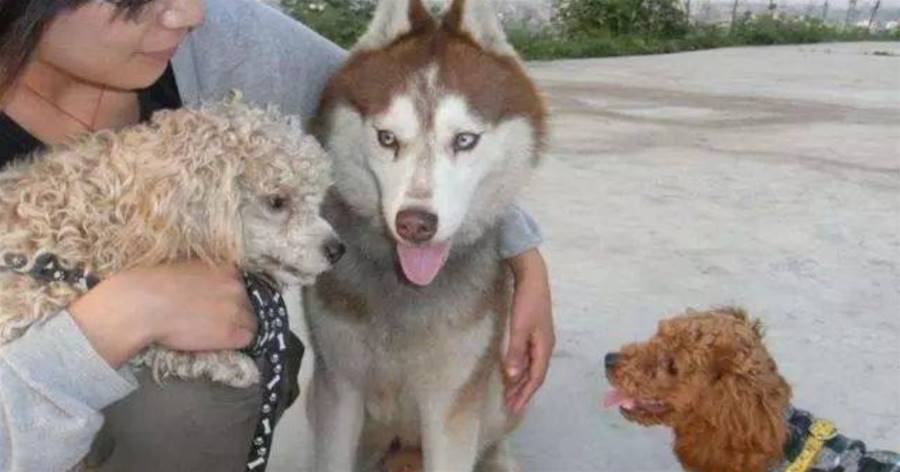 二哈心想:寶寶心里委屈,寶寶心里好苦啊,出門就被泰迪群毆,我不想活啦。