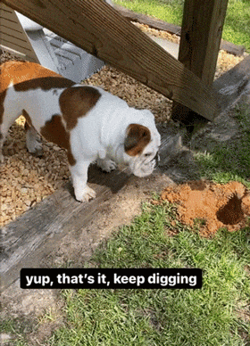 看孩子那麼喜歡土坑,鏟屎官就在院子里又挖了好幾個新的溝:完全按照 Franklin的長度和寬度以及高度修成的溝!