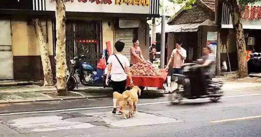 網友@小丑魚 在街邊看到一只金毛狗狗,非常乖巧的跟在主人身邊,一起走向賣火龍果的攤位挑水果。原本沒什麼笑點,但因為太喜歡金毛,他便打開相機對準金毛開拍,可在鏡頭拉近后,突然笑出了豬聲。
