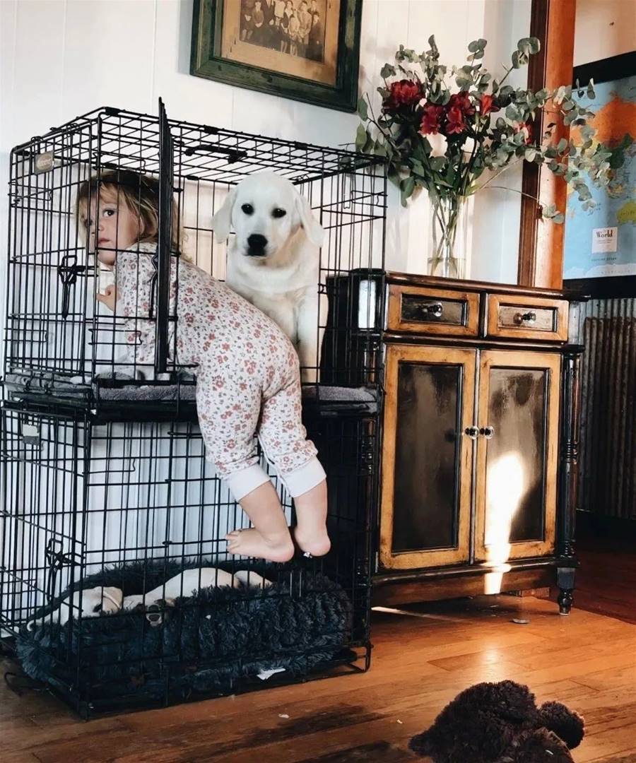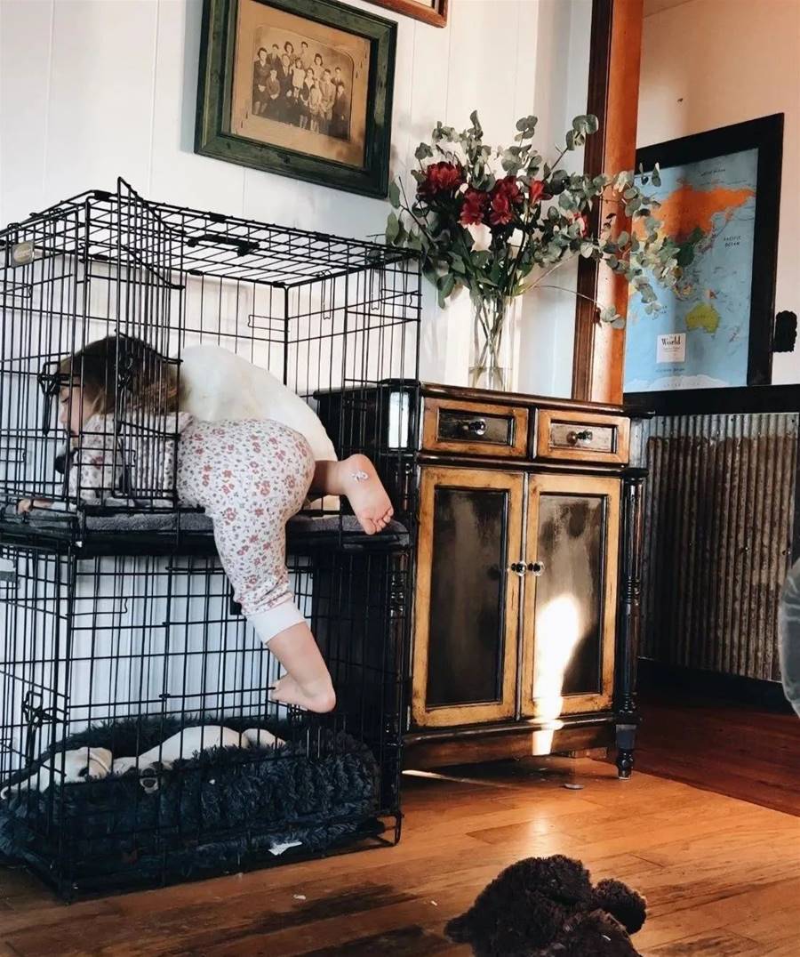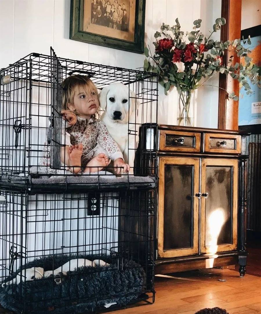 估計小拉布拉多也萬萬沒想到,自己都睡在上鋪了,還是能被沒有邊界感的小主人,非要跑來自己狗窩做客...